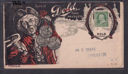 US 279 US Bureau and Regular Issues on 1901 adv cover from Buffalo, NY Hold Food Products 3 Colon Revolutionary War Crier, Pan AM epo 2 color on Reverse. VF but small tear LL.