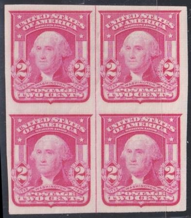 US Bureau and Regular Issues 320 Block of 4 with Vertical Line, carmine rose shade Mint VF