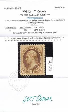 • US Bank Notes #161 Mint Hinged Fine Redistributed Part OG - CV as no Gum Crowe Cert Cat Value $300