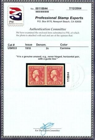 US George Washington and Ben Franklin #533 NH VFV Line pair with cert Cat Value $425