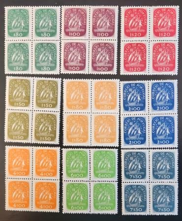 Portugal #702-710 NH VF Caravel, complete in blocks of 4 , 1x #709 with gum strip Cat Value $1700