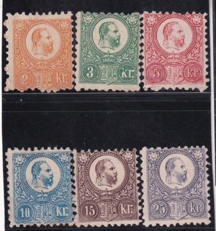 Hungary 1871 #1-6 MINT AVE – F No gum lovely set Cat Value $4800 for OG