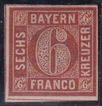 German States – 1850 Bavaria #5 MINT VF Hinged with shallow thin OG Cat Value $50