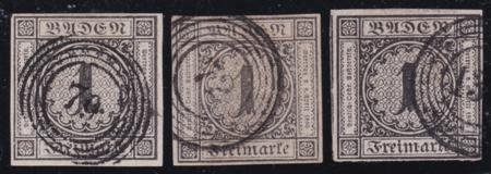 German States – Baden #6 USED VF , 3 diff numeral cancels Cat Value $27.50