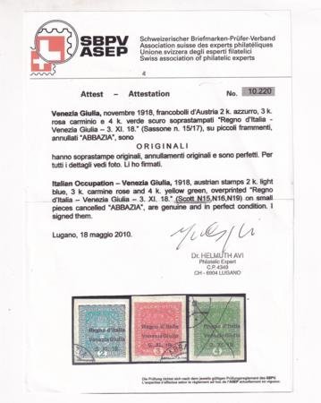 Austria – Venezia Giulia #N15 USED VF – XF Avi original cert Cat Value $500