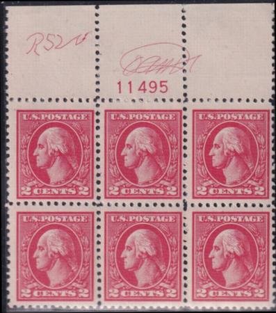 US Washington – Franklin #528 MINT LH F – VF Top plate # block 11495 with monogram Cat Value $200