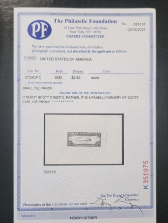 US Airmails #C15(CF1) MINT XF Large die proof in black, Panelli forgery