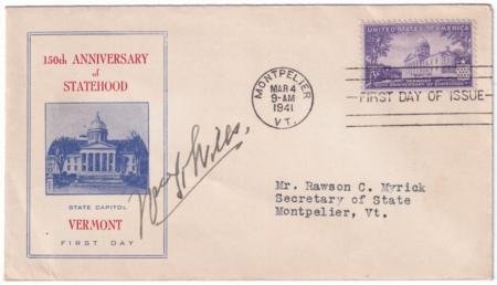US 1941 (Mar 4) Scott 903 FDC Signed by Governor William Henry Willis of Vermont. Governor from 1941-1945. He was a member of the Federal Communications Commission.