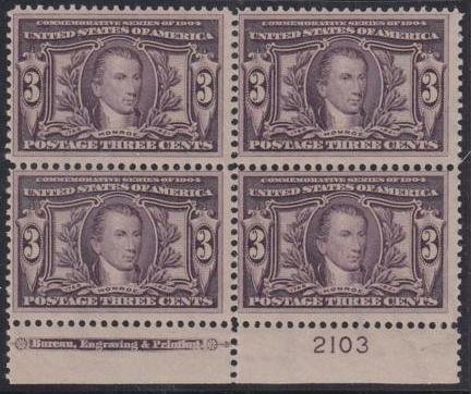 US Early Commemoratives #325 MINT F NH plate block of 4, with imprint Type 5 Cat Value $1050