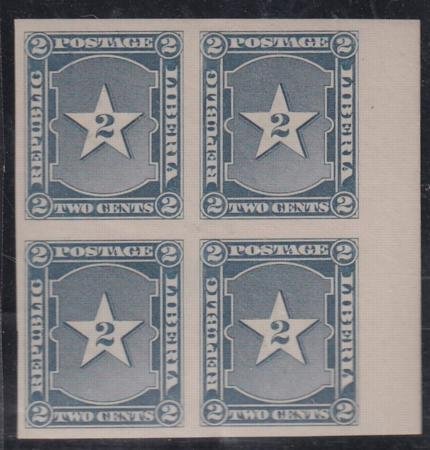 Liberia #34var MINT HINGED Imperf margin block of 4