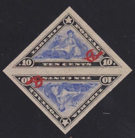 Liberia #O69var MINT No Gum imperf pair – shifted surcharge