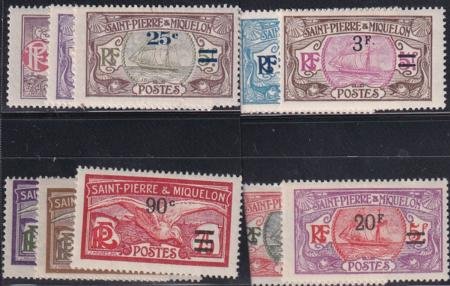St Pierre and Miquelon #121-31 MINT Hinged F-VF Fresh set, surcharges Complete, Cat Value $79.50