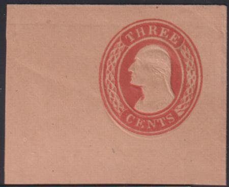 US Postal Stationery and Cut Squares #U10 MINT XF FC 54×43 mm Double embossing error over 1 mm down. Unusual and rare!