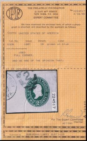 US Postal Stationery and Cut Squares #U308 Used XF FC part Fredericksburg, VA “2” duplex. PF cert. Cat Value: $4250
