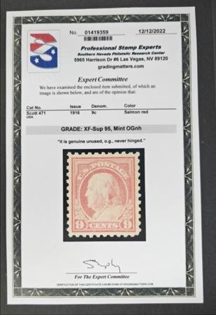 • US Washington - Franklin #471 Mint NH  New PSE cert 95 Beautiful! Cat Value: $950 as 95