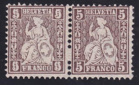 Switzerland 1881 #61a F-VF Mint Hinged Error in pair with normal doubles.