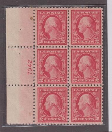 US Washington – Franklin #463 NH F Left Side Plate Block Plate 7942 Plate 7942 is source of 5c carmine error #463 Cat Value: $250