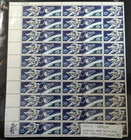 US Modern #1331-32 NH VF 5c space Twins plate 29+322, Upper left 19 Red stripes of capsule flag omitted. Full place of 50, Fresh Cat Value: $Cat 275 as block of 9 plus 17 pairs