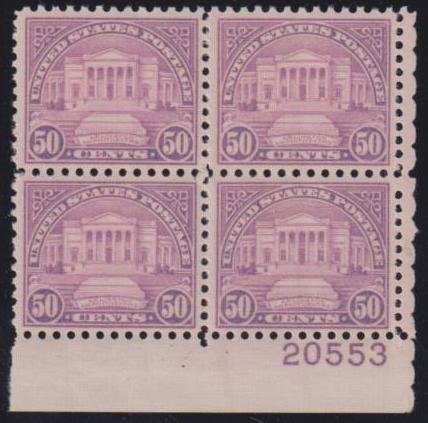 US Modern #701 NH VF 50c Lilac Rotary Plate Block, LR #20553 Cat Value $230