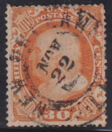 US Classics #38 Used F – VF S-O-N cancel slight thin spot1 short perf Cat Value: 500