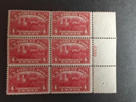• US Parcel Post #Q4 Hinged Mint F+ Right Plate Block of 6 Lightler Disturbed OG Cat Value: $1000