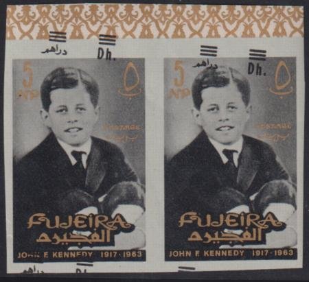 Fujeira 1967 #Yvert 61var. Kennedy, Major overprint shift on imperf Gum bends