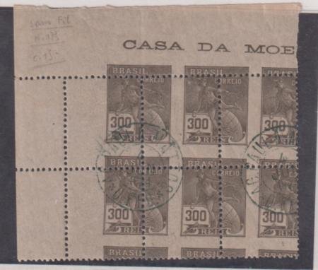 Brazil #228 Used Totally Misperfed block of 6, corner margin, clear cancel, scarce!