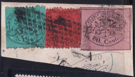 Italian Area – Roman States #18,21,22 Used on piece, 21 & 22 Trimmed. 18 Light creases. Cat Value: $525