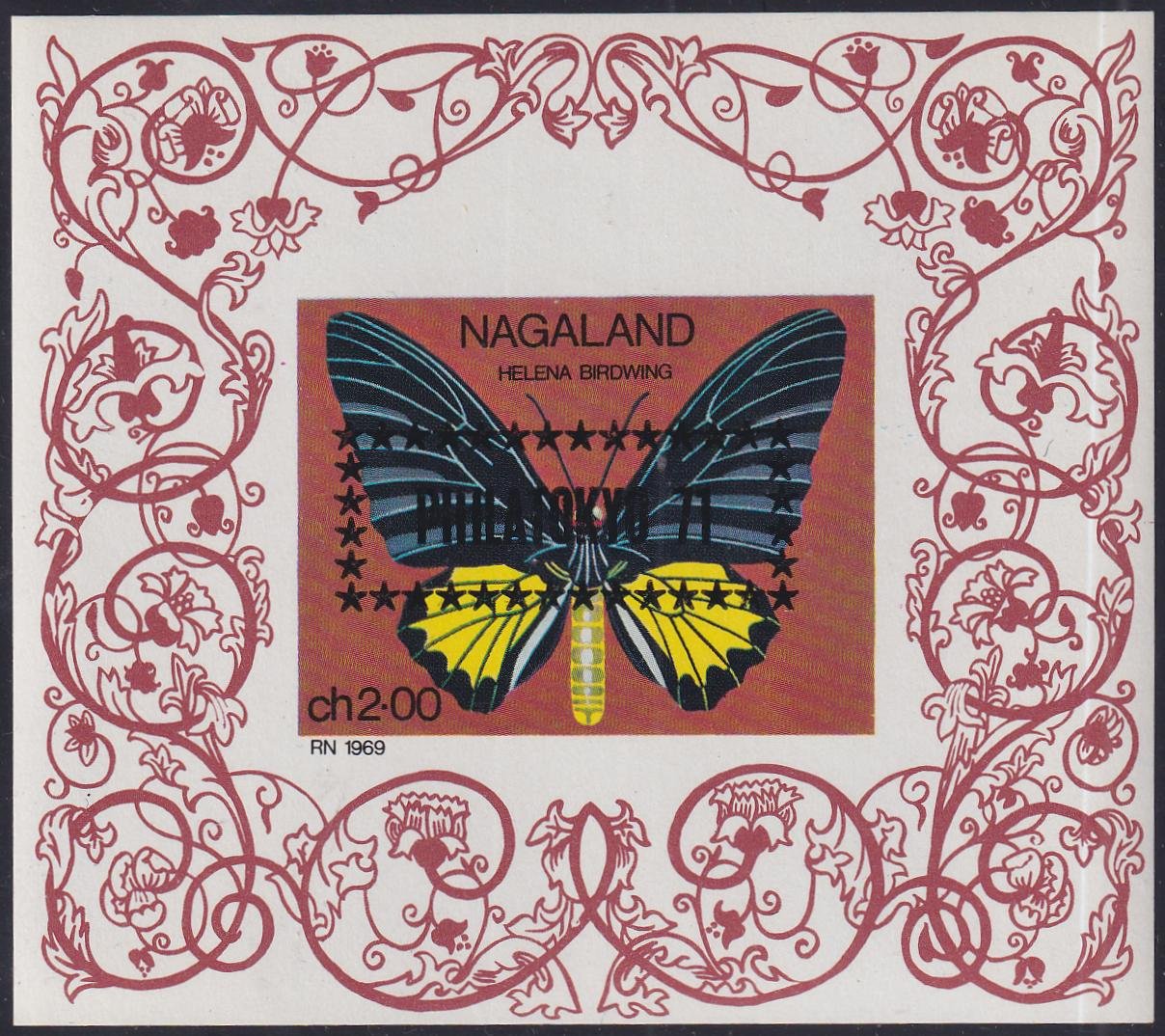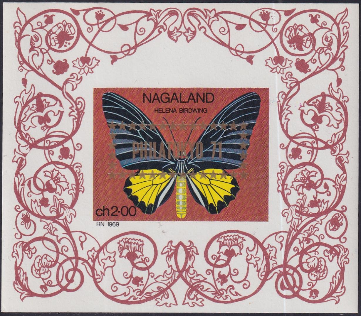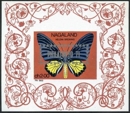 Nagaland 1971 Butterfly NH 3 S/S “Philatokyo” with Different Colored Overprint