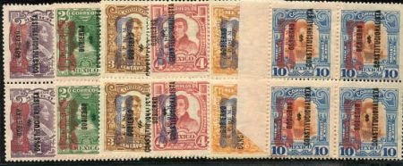 Mexico 1916 #517-527 Mint F-VF Blocks of 4 with Stylized Butterfly Overprint