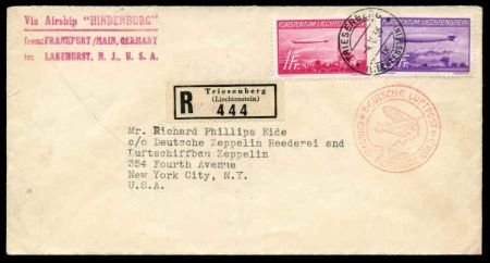 Liechtenstein 1936 Hindenburg 1st No. American Flight Cover