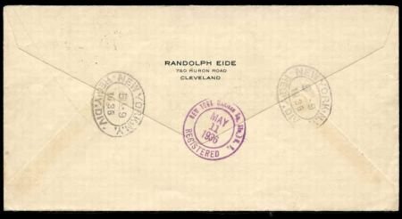 Liechtenstein 1936 (May 9) Hindenburg 1st North American Flight cover with C15-16. Sent to zeppelin office in New York