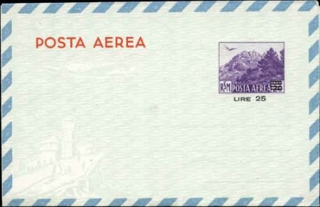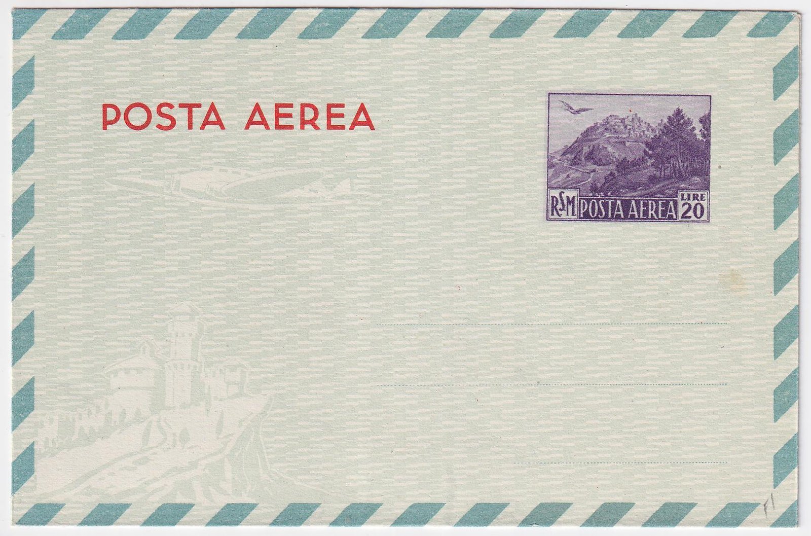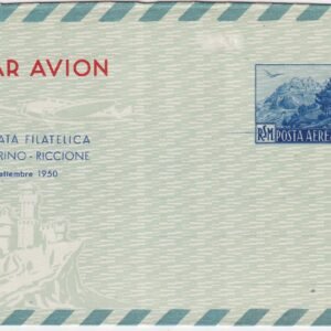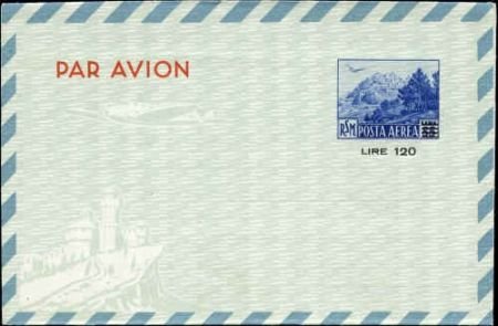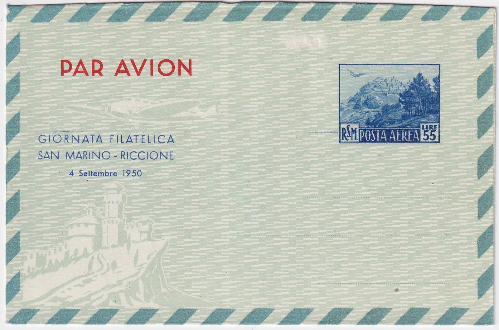 San Marino 1950  Four VF mint aerogrammes, Sassone 1 – 2, 7 – 9. Lira 20, 55, 25 on 20, 120 on 55 Picture for reference only.