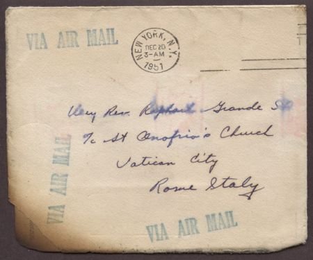 Vatican 1951 Rome Crash Cover with Envelope