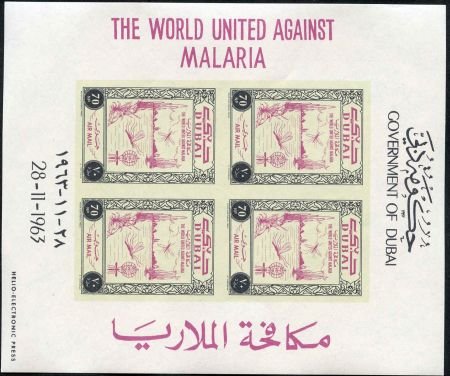 Dubai 1963 C15 imperf M/S of 4 NH in different colors, Insects, Malaria