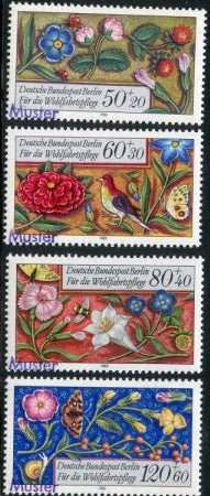 Germany 1985 9NB227 – 9NB230 VF NH “Muster” Specimen Overprint, Butterflies & Flowers