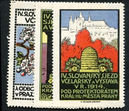 Czechoslovakia 1914 Set of 3 Bees and Beehive colorful labels, disturbed gum.