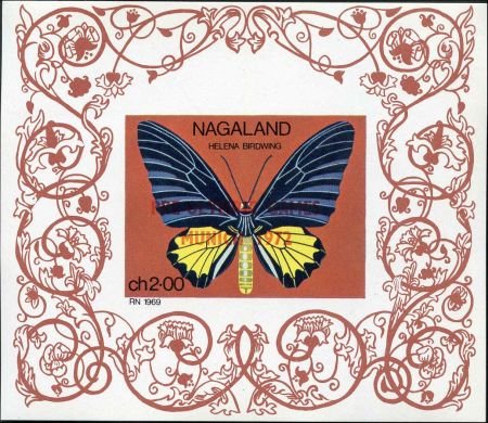 Nagaland 1969 Two Butterfly NH S/S, One with Red Overprint, One with Black Overprint, V