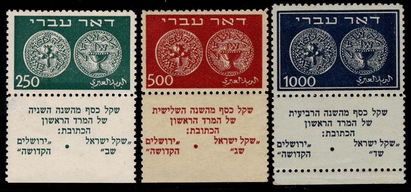 Israel 7-9 Tabs NH VF – XF, 7 VF -XF, 8 and 9 are XF, Beautiful set for the fussiest collector