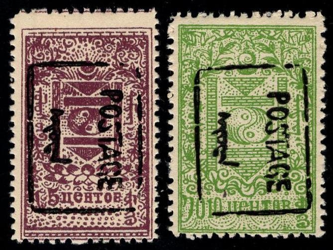 Mongolia 18a, 19a LH Fine, Black Overprints