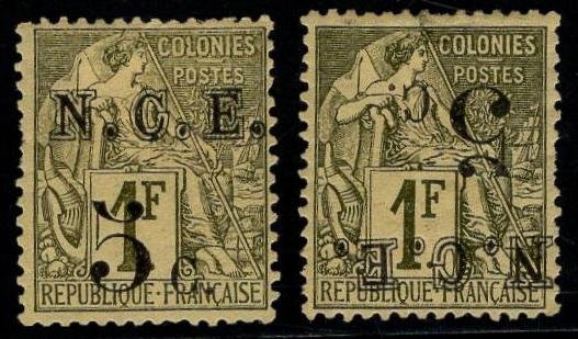 New Caledonia Yv 10,10a Heavily Hinged F-VF, small thin on each cv 77.50 Yv €110