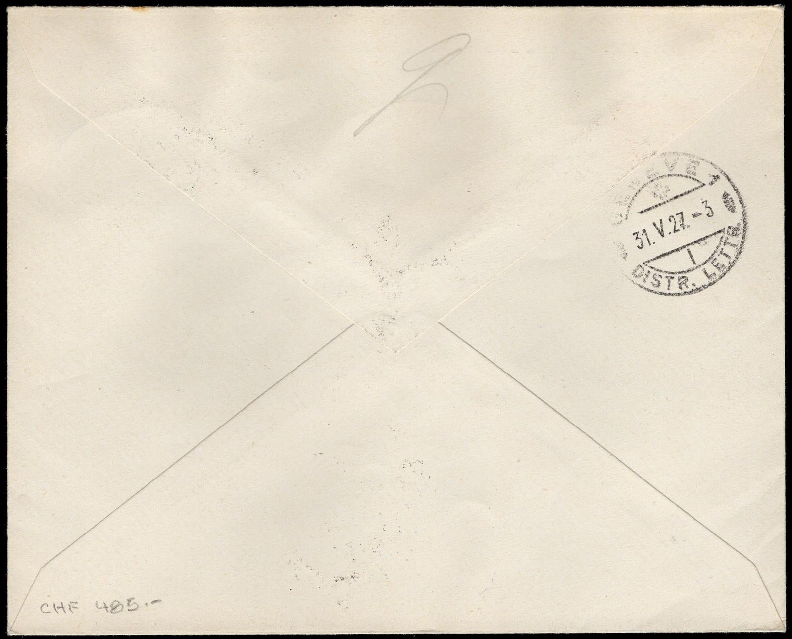 Switzerland 1927 (May 5) Registered Airmail Cover with Zumstein S26, 10rp + 10rp Interspace Pair with tête bêche pair and 15rp airmail. Sfr 450.00