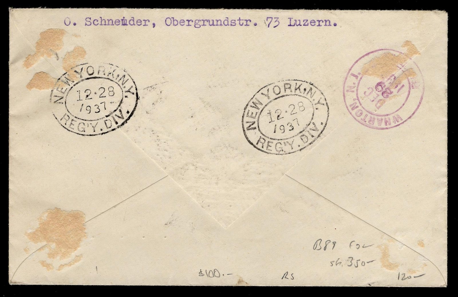 Switzerland 1937 #B89 FDC VF Sent Registered to USA, Zumstein BL3, Scott B86 added. Sfr 350.