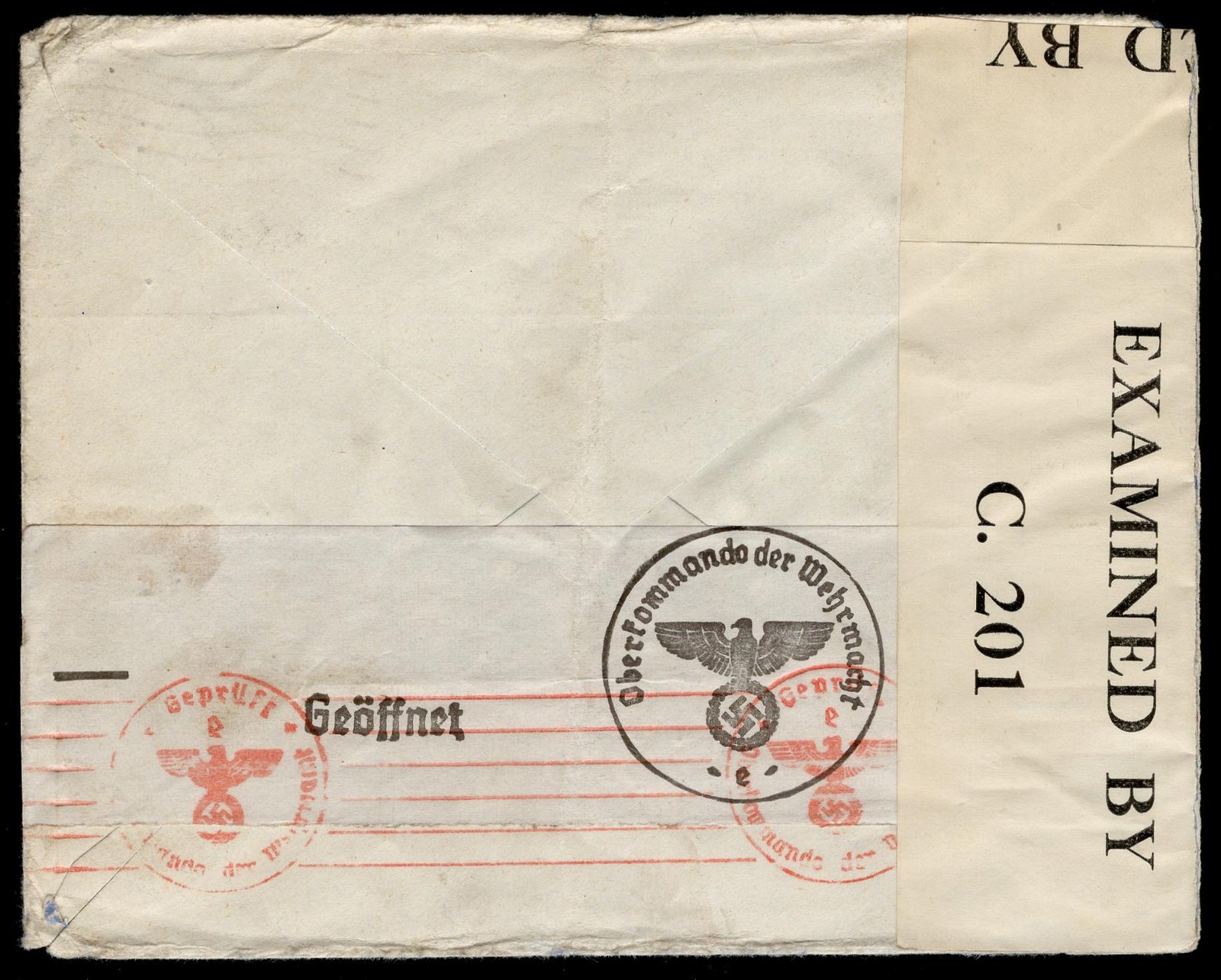 Switzerland 1941 Cover with Bureau of Education Zumstein DV-IV blue Pestalozzi. Double censored in POW camp in Canada.