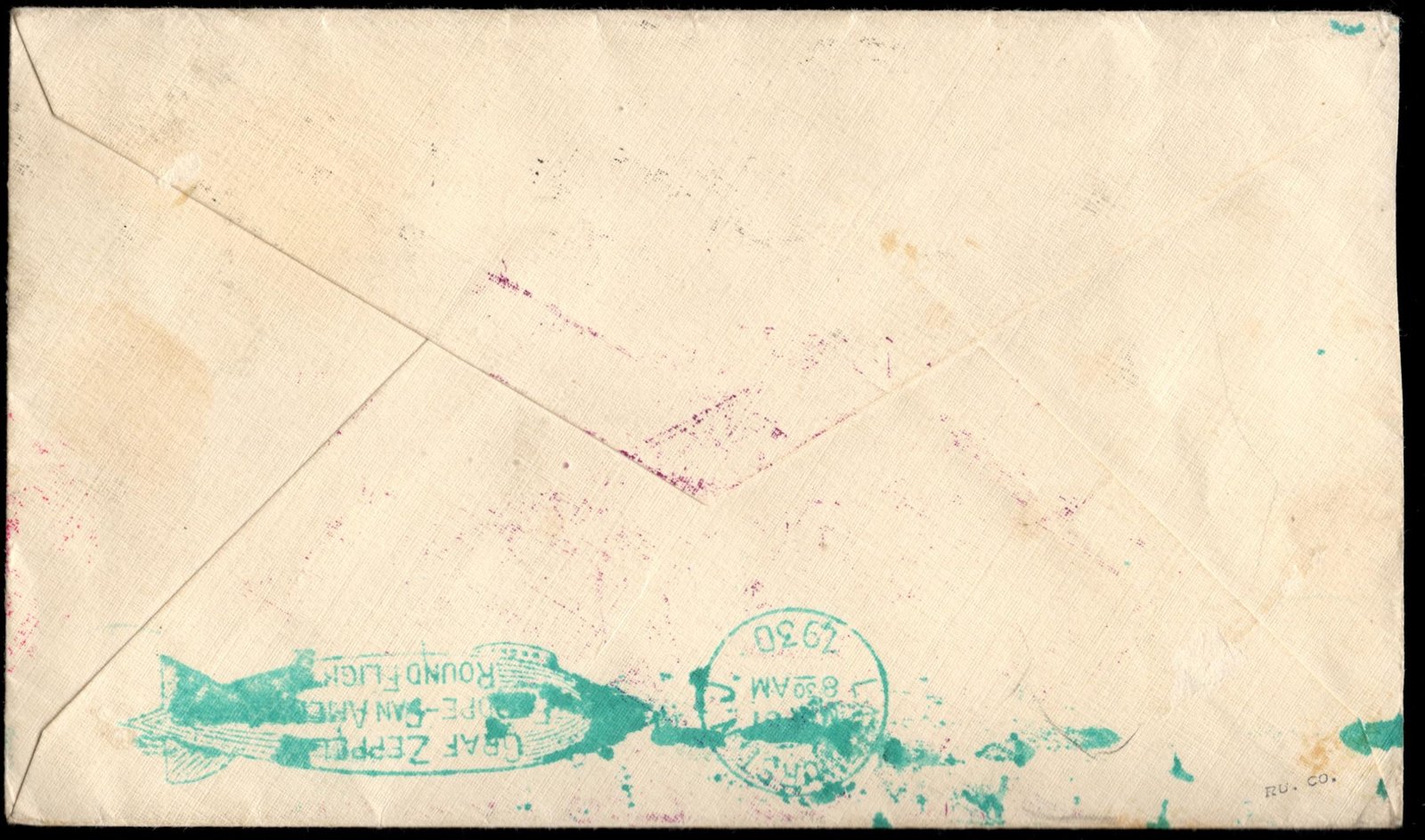 US 1930 (Apr 29) C15 VF Stamp on VF Cover sent to Long Island, NY With green Lakehurst receiving cancel on reverse.