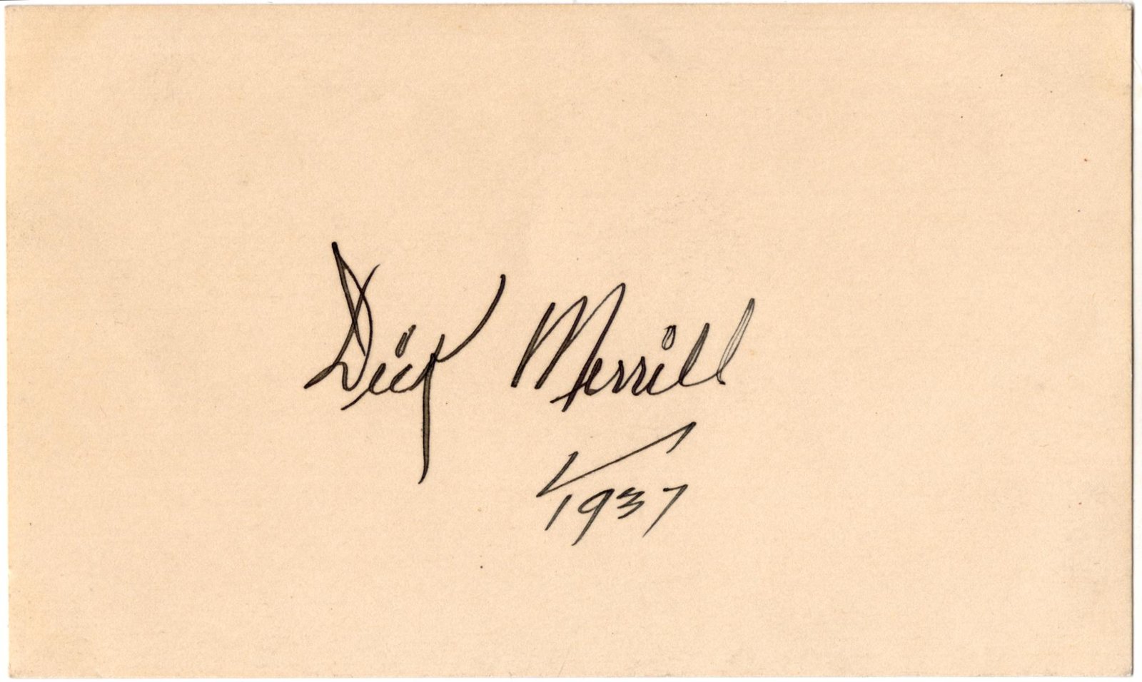 US 1937 Dick Merrill, Aviator . cut Signature on 3′ x 5″ card
