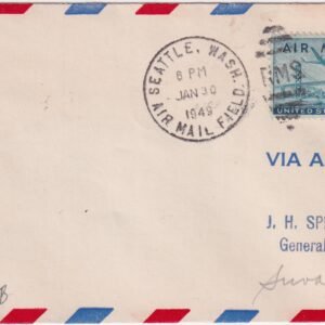 US 1949 (Jan 30_ First Flight Seattle, WA to Suva, Fiji on Airmail Cover with C36