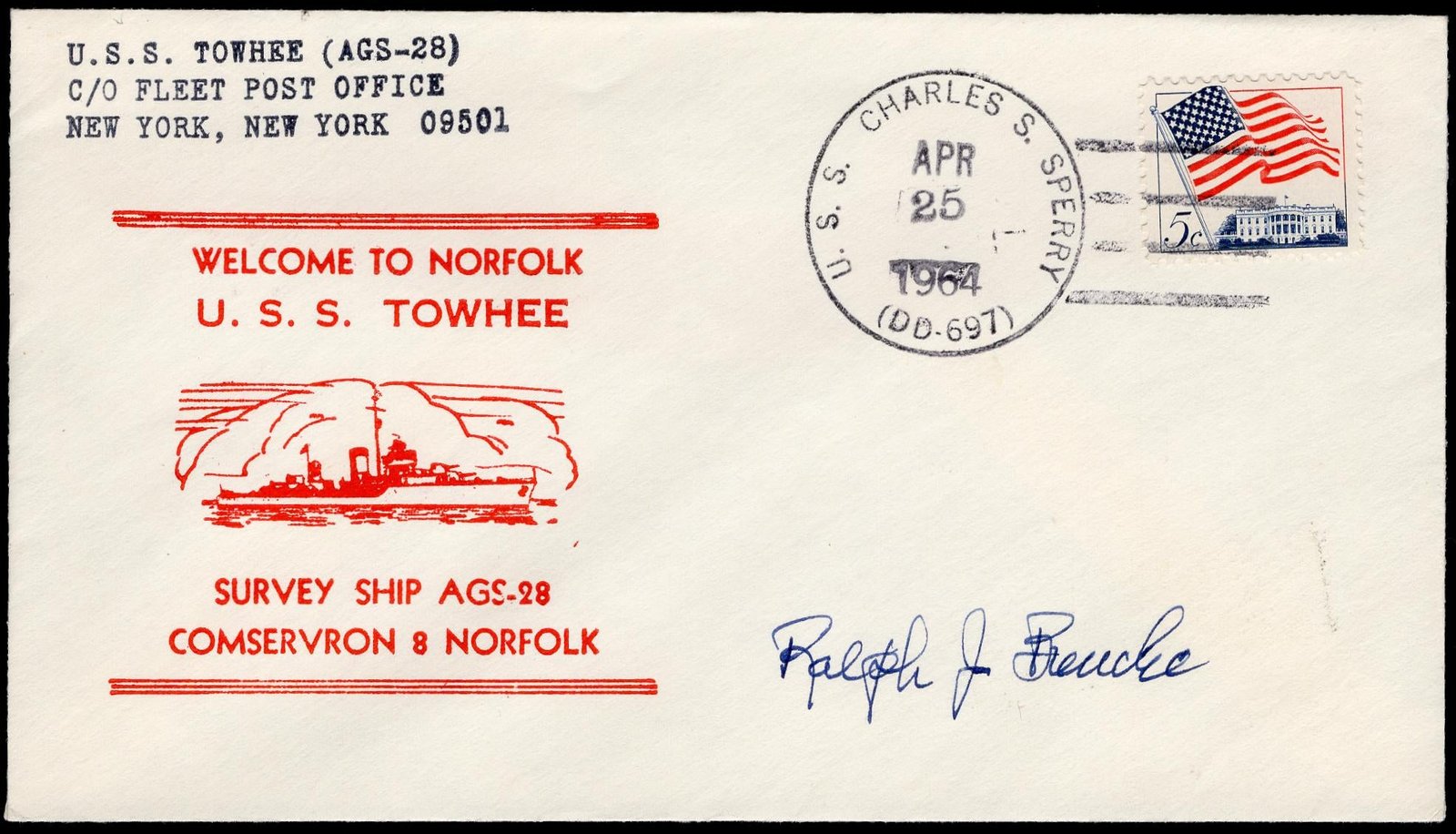 US 1964 (Apr 25) #1203 on U.S.S. Towhee Cover Signed by Ralph J. Bunche