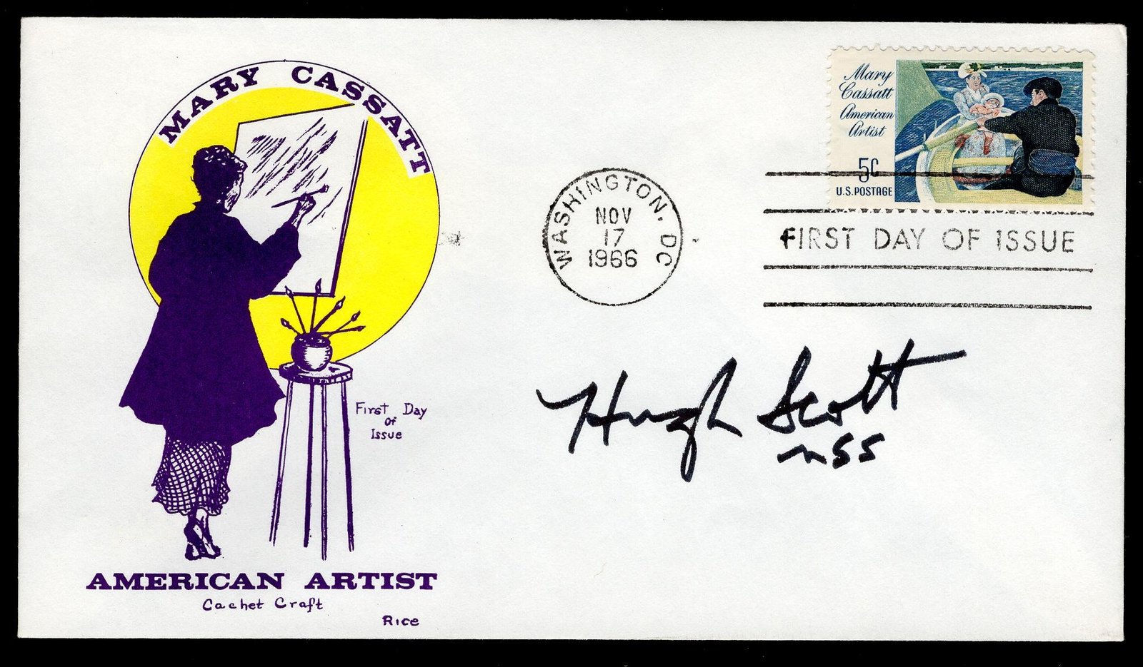 US 1966 #1322 Mary Cassatt FDC Signed by Hugh Scott, US Senator from PA