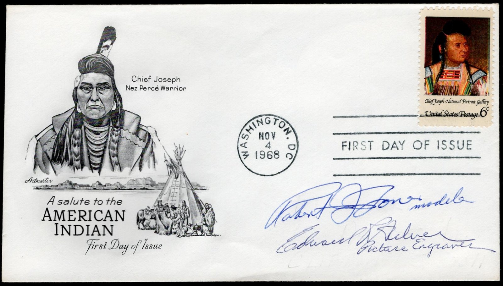 US 1968 (Nov 4) #1364 Chief Joseph FDC Signed by The Designers and Engravers for The Issue
